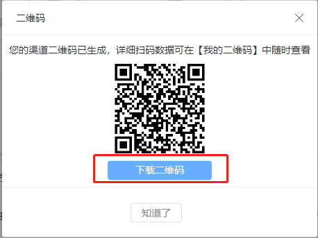 在您的渠道二维码生成后,点击“保存二维码”可以直接下载图片。